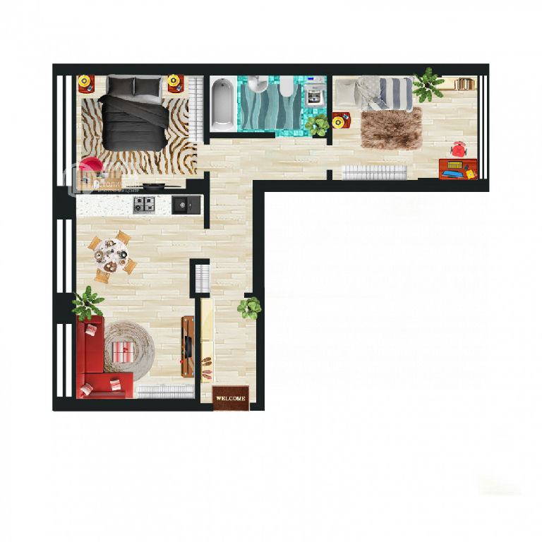 Семейная 3-комнатная квартира с продуманной планировкой: кухня-гостиная и две изолированные спальни.